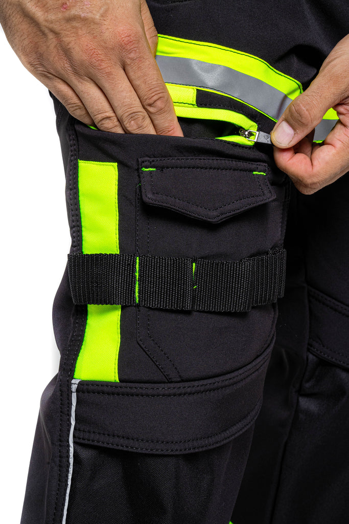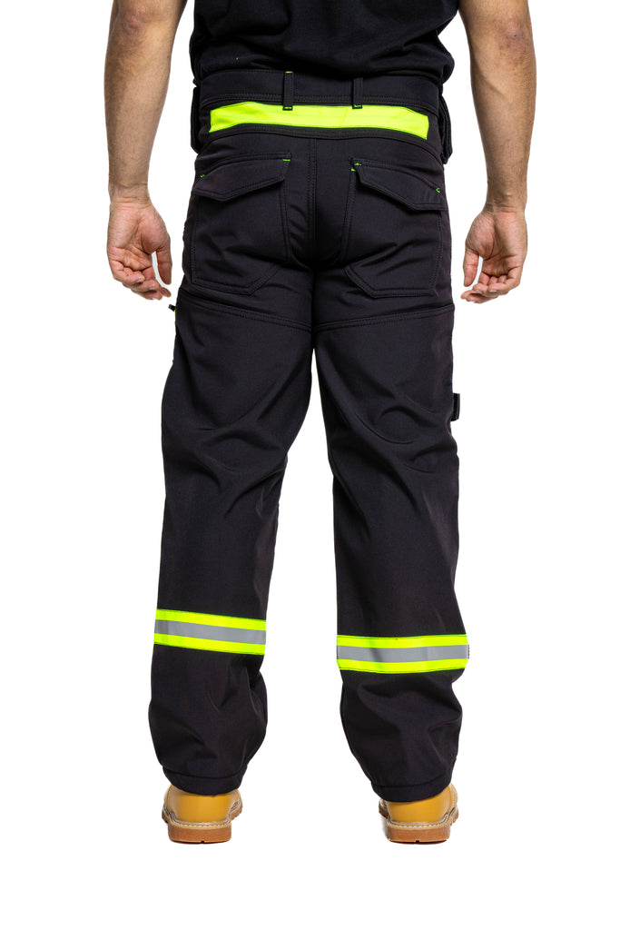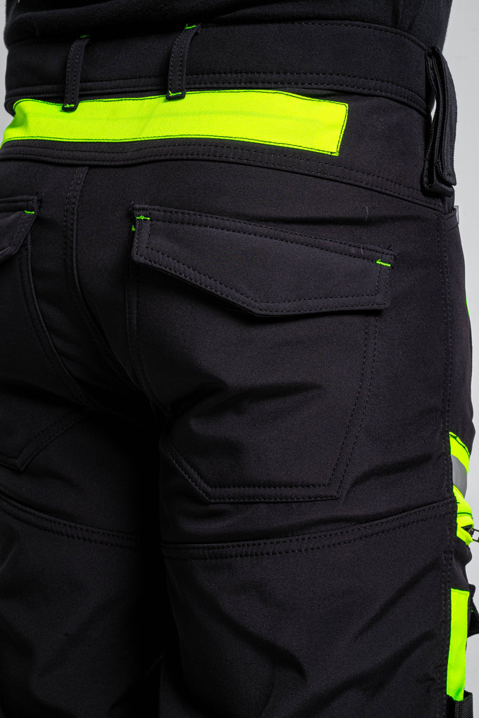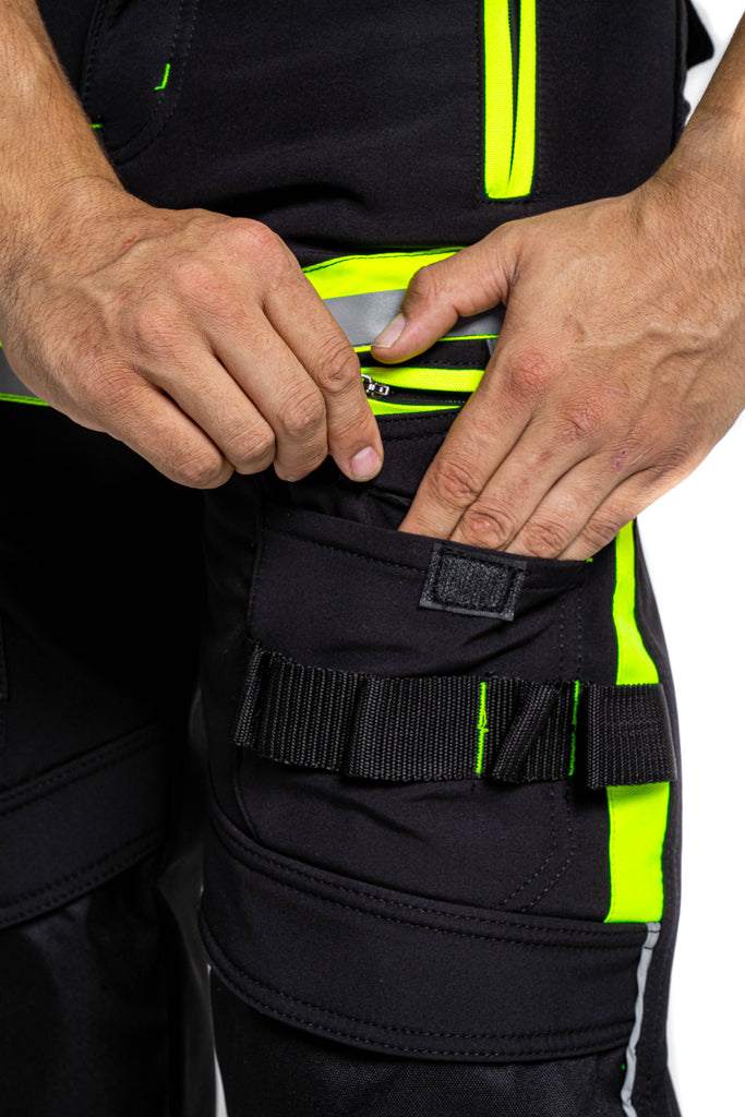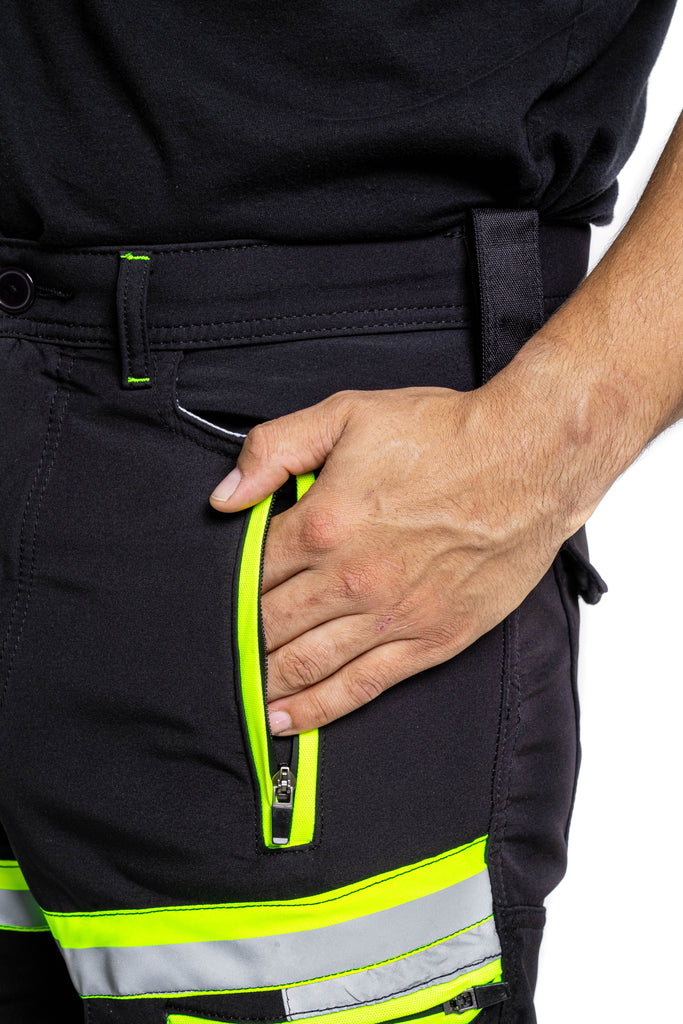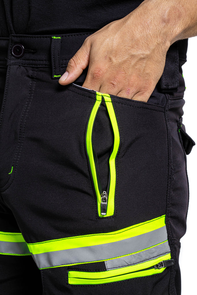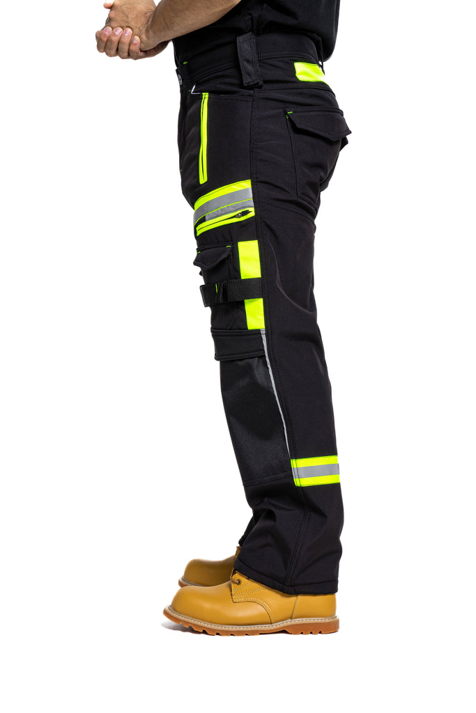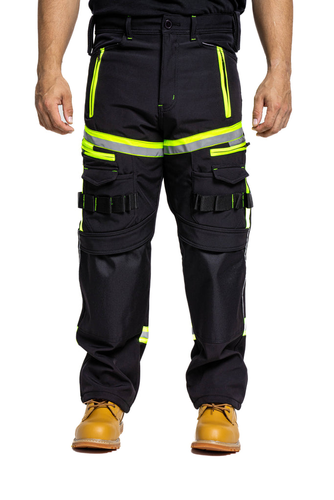 Sam Caan Men’s High Visibility Black work trousers are made of A-Grade 100% Polyester Soft Shell Fabric. Hi Viz reflective lining at key areas makes it visible at night hence increases visibility in case you are working outdoors.