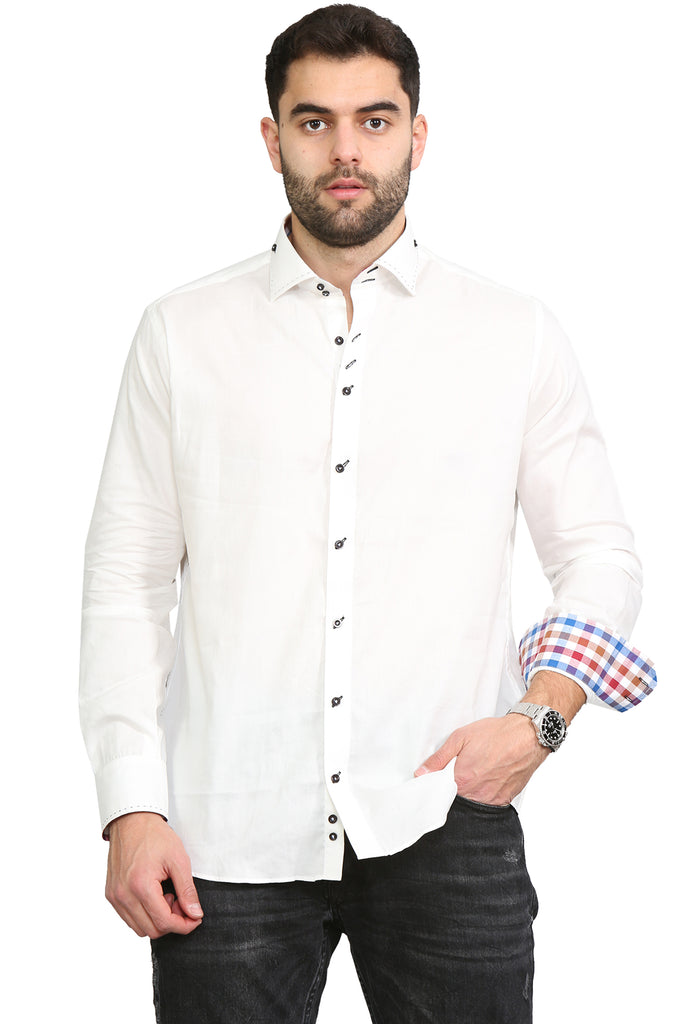 Ideal for all occasions, from national events to celebrations and meetings. Detailed with spread collar, long sleeves, and contrast fabric on collar and cuffs.