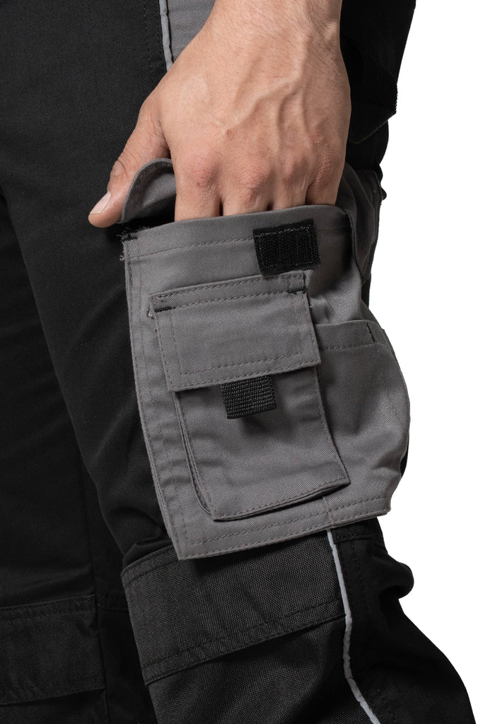 - 2x front and Back Pockets with reflective piping, 2x front thigh Velcro pockets, 1x tool hanging loop, 1x side Velcro cargo pocket and mobile pocket, 1 x diagonal tools pocket
