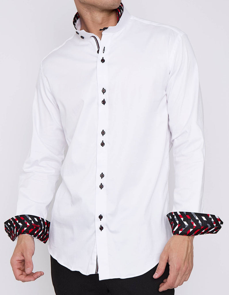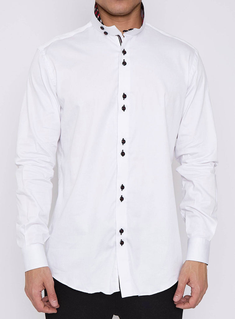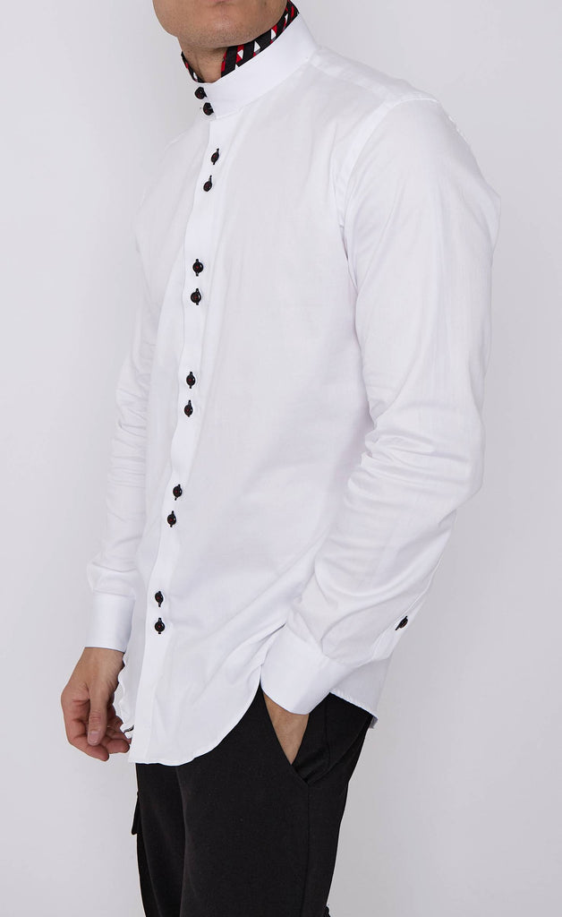 Ideal for all occasions, from national events to celebrations and meetings. Detailed with spread collar, long sleeves, and contrast fabric on collar and cuffs.