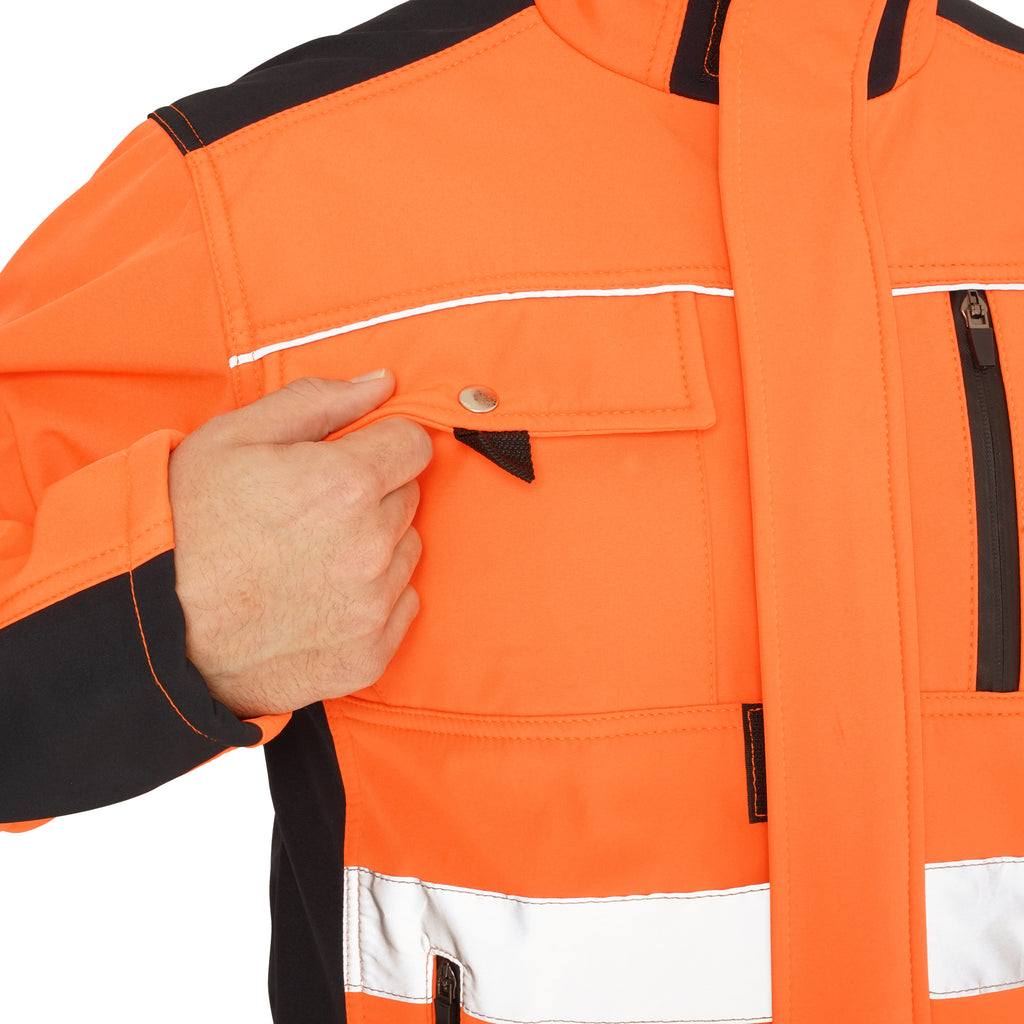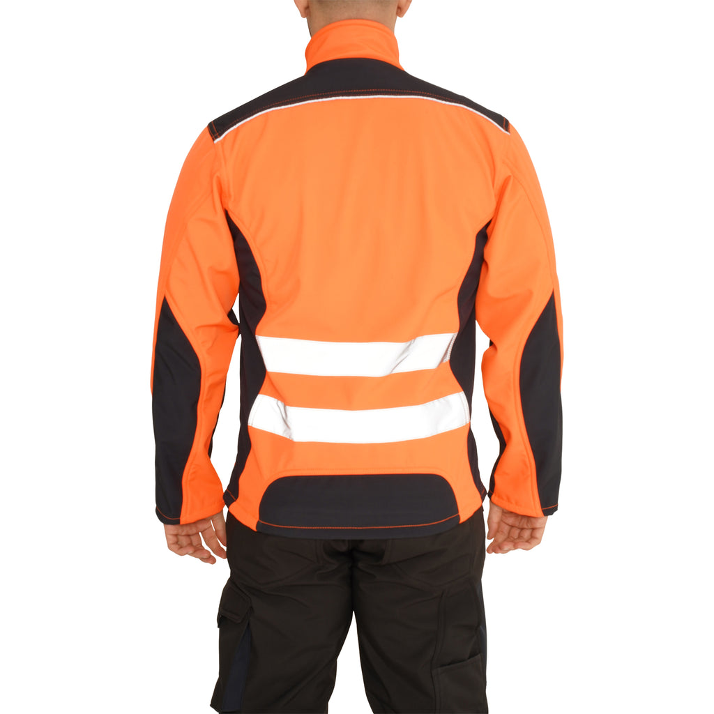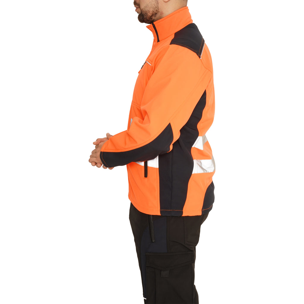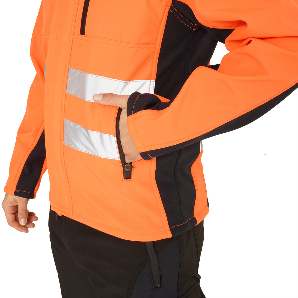 Stay visible and protected with the Sam Caan Orange Hi Vis Softshell Jacket. Boasting high visibility, it features two-inch reflective tape across the waist, chest, shoulders, and back, ensuring you're easily spotted in the dark.